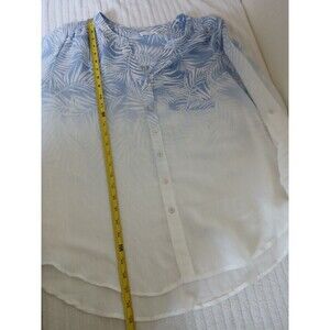 Fyve Womens Button Up Shirt Size 1X Ombre Blue White V Neck Roll Tab Lightweight