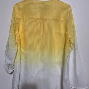 Fyve yellow and white striped ombré blouse with roll-tab sleeves XL