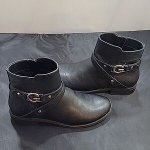 G BY GUESS ROUND TOE ZIP CLOSURE ANKLE BOOT SIZE 8M COLOR BLACK EACH SIDE ZIPPER CLOSURE G GOR GEUSS LOGO HARDWARE VERY VISIBLE DESIGN DETAILS MADE WITH TEXTILE UPPER TEXTILE MAN-MADE MATERIALS LINING BALANCE UPPER MAN-MADE MATERIALS HEEL HEIGHT MEASUREMENTS APPROX 1"INCHES THIS ITEMS IS PRE-OWNED EXCELLENT CONDITION WITH ONLY LIGHT SIGNS OF WEAR IF ANY CHECK THE PICTURES