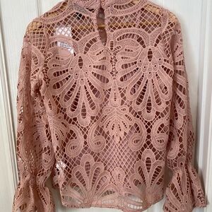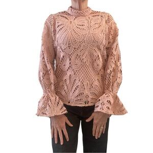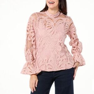 G By Giuliana Black Label Lace Blouse NWT Size XS Pink Bell Sleeve Floral Cami
