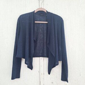 G By Giuliana Navy Blue Open Knit Waterfall Cascade Cardigan Cropped Small