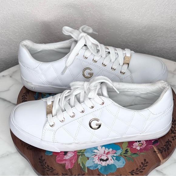🅶 G By Guess Backer Quilted White Sneaker, Size 9