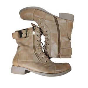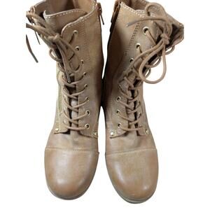 G By Guess Berlyn Women's Tan Combat Boot Sz 8 Lace and Zip Up Gorpcore Outdoor