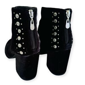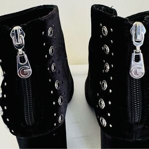 G By Guess Black Velvet 3 3/8" Heeled Studded Ankle Boots Size 8