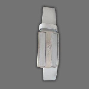 G By Guess Chevron Textured Plaque Belt In White Polyurethane & Steel