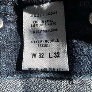 These are Guess men’s low rise Joey jeans. They are a dark wash bootcut style.