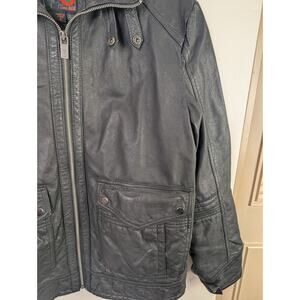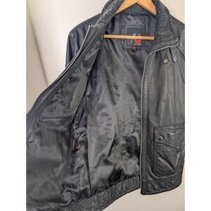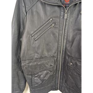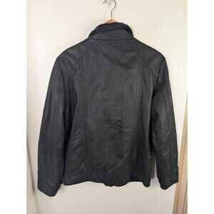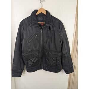 G By Guess Men's Small Black Leather Jacket Bomber Aviator S