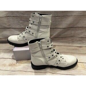 G By Guess Prez White Boots Buckle And Side Zip Closure Size 9.5
