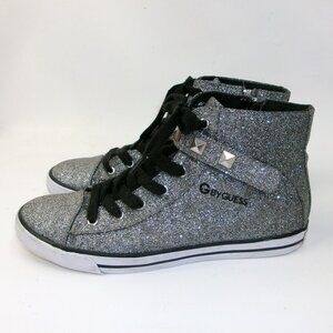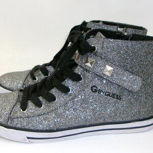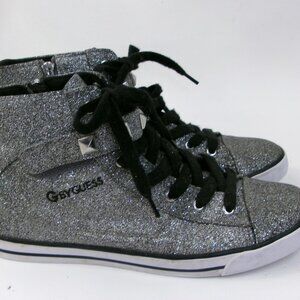 G By Guess Silver Sparkle High Top Sneakers 9M Women's
