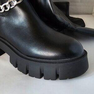 G By Guess Womens Coen Riding Boots Black Stretch Over Knee Platform Chain 7M. Worn once.