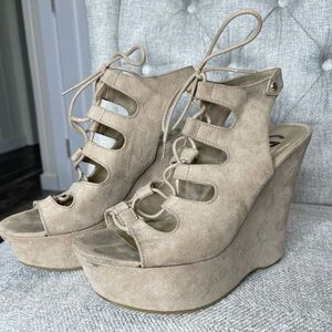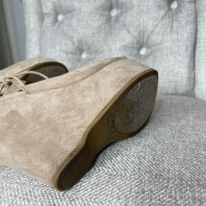 G By Guess Womens Tan Wedge Lace-Up Dress Booties 8.5 Vegan Suede.