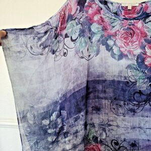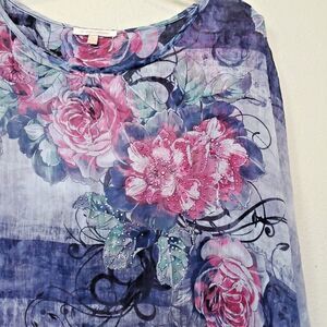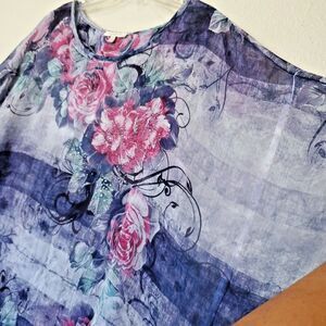 G Collection Floral Print Short Sleeve Top Size 3XL Blue Lagenlook Boxy Lined Blouse