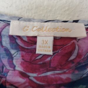 G Collection Floral Print Short Sleeve Top Size 3XL Blue Lagenlook Boxy Lined