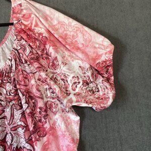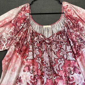 G Collection Pink & White Floral Short Sleeve Blouse Loose Fit Womens Size XXL