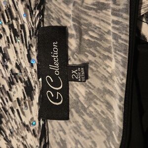G Collection Women’s Plus Size 2X Evening Top – Two-Layer Black, Gray & White with Sequins