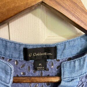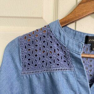 G Collection Womens Blue Chambray Eyelet Shoulder Split Neck Shift Dress Large P