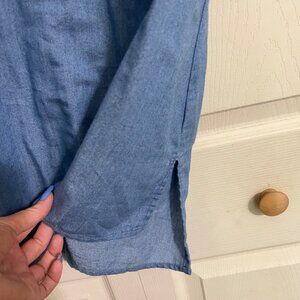 G Collection Womens Blue Chambray Eyelet Shoulder Split Neck Shift Dress Large P. NOTE: some wash wear. Measurements Shoulder to shoulder: 15" Underarm to underarm: 21" Length: 32" Sleeve: 14" Offers always welcome! Measurements are approximations taken while hanging