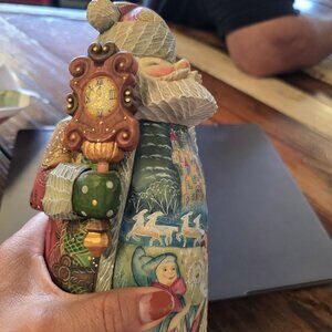 The G DeBrekht Cinderella's Enchantment figurine captures the magic of Disney's beloved Cinderella story. Standing at 9 1/2 inches tall, this collectible piece from 2004 transports fans into the whimsical world of Disney's classic film. With its intricate details and enchanting design, this figurine is the perfect addition to any Disneyana collection, celebrating the timeless beauty and grace of Cinderella's holiday spirit.