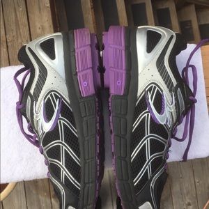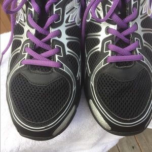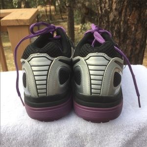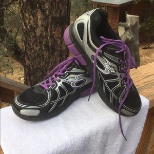 Great condition, G Defy sneakers with purple trim, size 10.