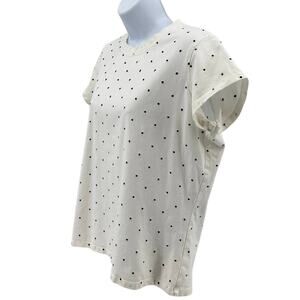 G Flex Top WMNS L White Black Polka Dot Pullover Short Sleeve Crew Neck Stretch