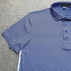 G Fore Polo Shirt Mens Large Blue Stripe Performance Stretch Golf Button
