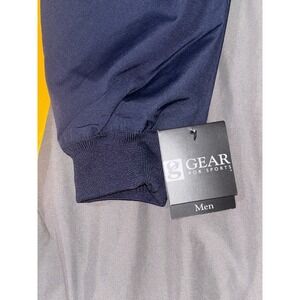 Keywords: G Gear, windbreaker, pullover jacket, navy yellow, sports jacket, mens large, athletic wear, lightweight jacket, retro style, colorblock jacket, new with tags