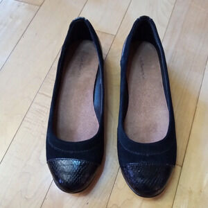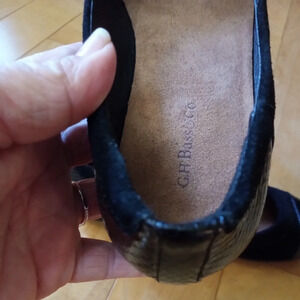 G. H. Bass Cara black suede flats with snake skin toe and heel caps size 7 EUC