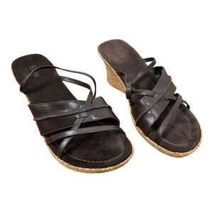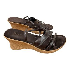 G .H. Bass Chianti Strappy Women's Sz 9 Brown Leather Strapy Cork Wedge Sandals