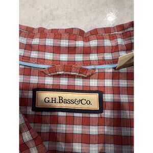 G. H. Bass & Co. Red Plaid Shirt Mens Tee XXL Short Sleeve Cotton Blend Collared- In good condition. No rips tears or stains. Buttons are all intact.