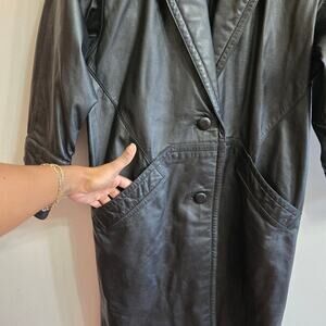 Leather Coat, Women's Black Coat, G III Coat, Longline Leather Jacket, Black Leather Fashion, Medium Leather Coat, Women's Winter Coat, Genuine Leather Coat, Stylish Women's Jacket, Premium Leather Apparel