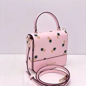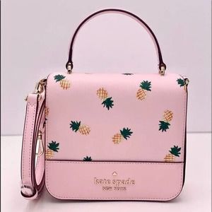 G Kate Spade Staci Square Pineapp Crossbody Pink Saffiano K7629 NWT $299 MSRP FS