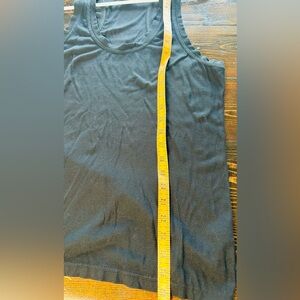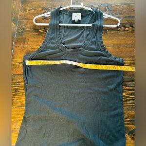 Goop Anastasia black racerback tank top. Scoop neck, sleek design. Spandex woven ribbed knit.