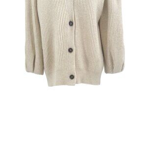 G. Label by GOOP Foster Ribbed Puff Sleeve Cardigan Sweater Ivory Merino Wool