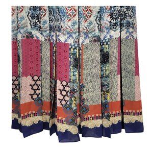 G. Label by Goop Patchwork Cat Pleated Midi Skirt Multi Boho Cupro