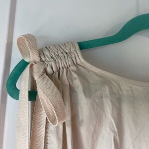 Description: amazing dress in a pale tan with a vibrant yellow hem