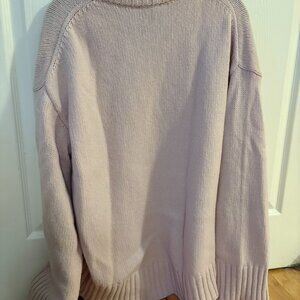 "Knit from virgin wool, this crewneck is an instant mood-booster on dreary days. The relaxed fit is prime for layering. The chunky collar and wide-ribbed trim are cozy. And the gently curved high-low hem is a styling dream: Wear it over an untucked button-down to show off the shirttail or loose over a pair of wide-leg jeans for an easy weekend look." Oversized, great condition! Chunky fit - lavender color!