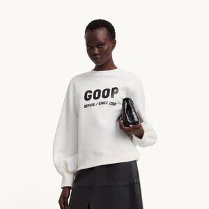 Between the sculptural sleeves and custom goop graphic, this pullover is as cute as it is comfortable (which is to say: very)."