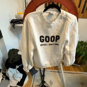 Perfect for all goop lovers!! This novelty sweatshirt can be dressed up or down with fun puff sleeves and the classic goop logo. Worn but amazing condition!