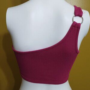 G. One Shoulder Ribbed Rayon Cropped Top XS Raspberry Y2K