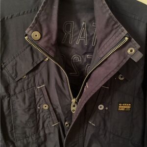 G STAR RAW SIZE MEDIUM DARK BLUE MILITARY JACKET JOHNSON OVERSHIRT SPELLOUT