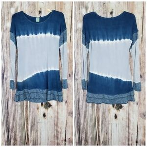 G Scent tye dye long sleeve ruffle hem tunic. Tee shirt style with thermal type sleeves and hem. In great pre-owned condition. Fast shipper and packaged with care.