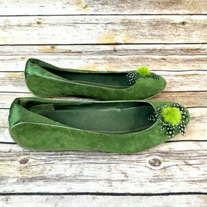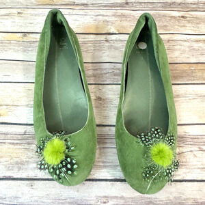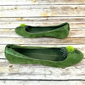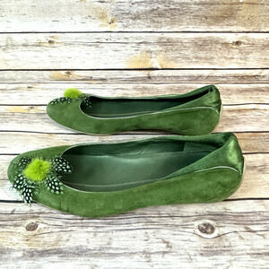 G Series Nike Air Womens Green Suede Ballet Flat Slip On Shoes w Feathers 9B