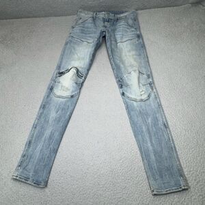 G Star Jeans Mens 31x34 Blue Raw Elwood 5620 3D Zip Knee Skinny Distressed Denim