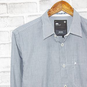 G Star RAW Men's Button up Shirt White blue striped size Large