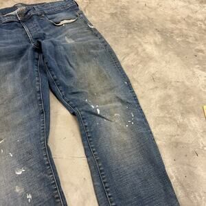 G Star Raw 3301 Straight Tapered Jeans Mens 34x32 Blue Button Fly Paint Distress