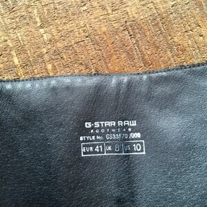 G Star Raw Footwear Leather Knee High Boots in black leather. Womens size EU 41, US 10, UK 8. 3" Heel. 0.5" Platform. 15.5" Shaft. 15" circumference at top. Inside Zipper closure. Condition as seen in pictures.