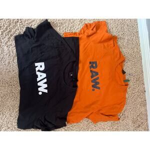 G Star Raw Holorn 2PC T-Shirts Men XL Orange Black Graphic Short Sleeve Crewneck