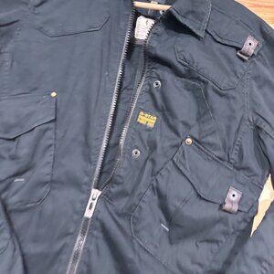 G Star Raw Jacket Large Black Lightweight Biker Full Zip Multi Pocket