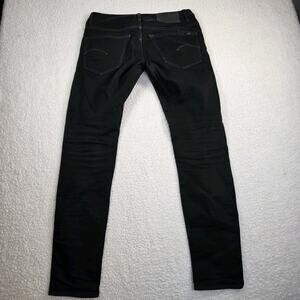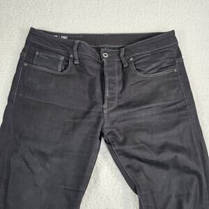 G Star Raw Jeans Mens 31x34 Black 3301 Slim Fit Tapered Button Fly Denim Pants. See photos for measurements