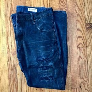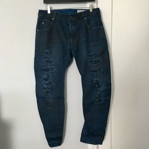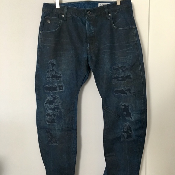 G Star Raw distressed details accentuate jeans' paneled design. Belt loops Five-pocket style